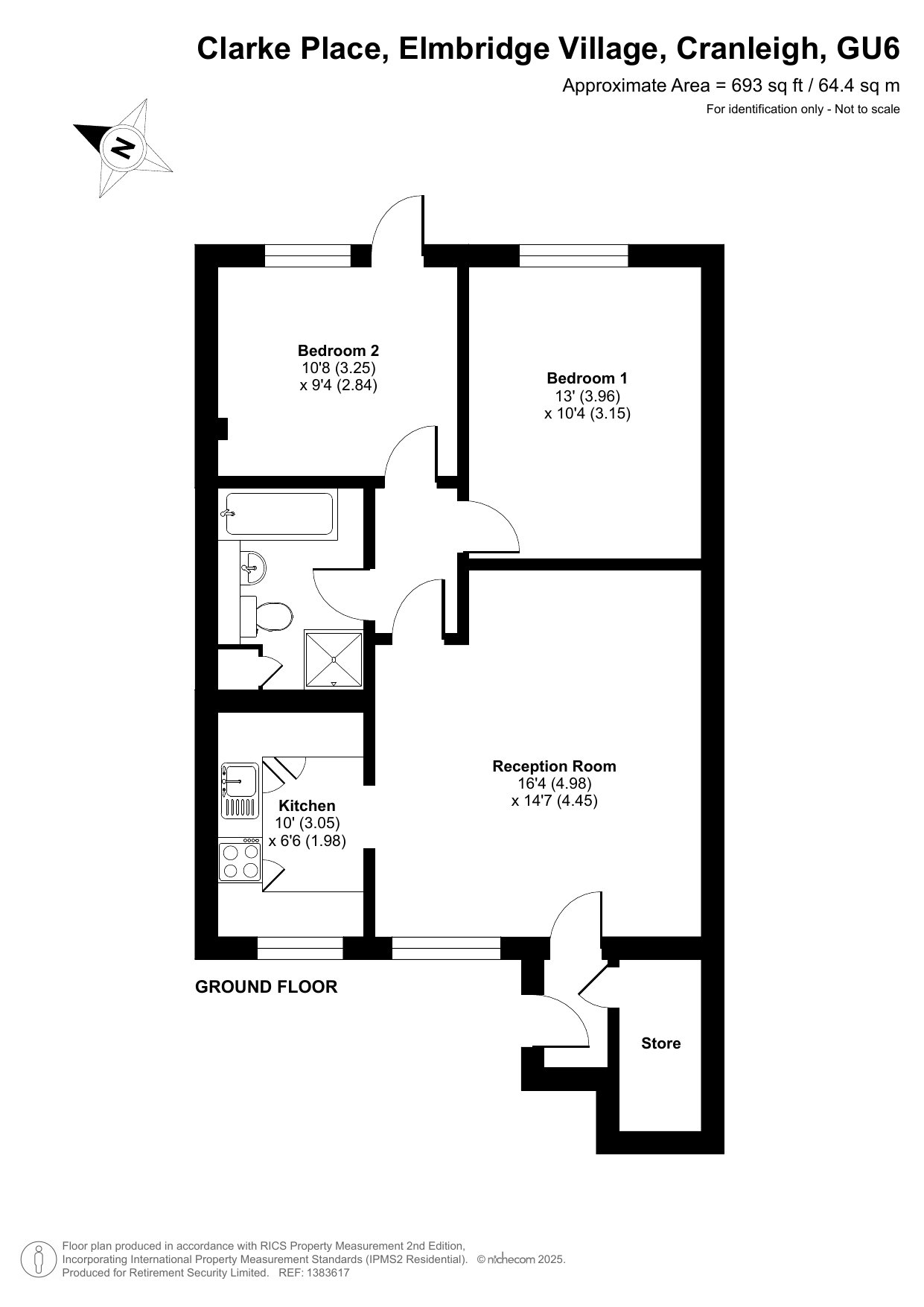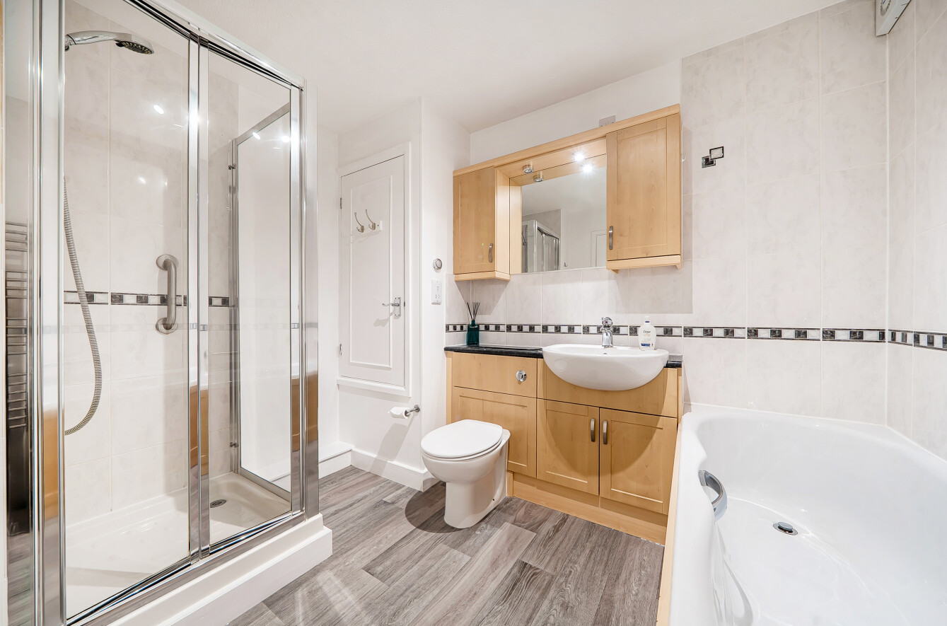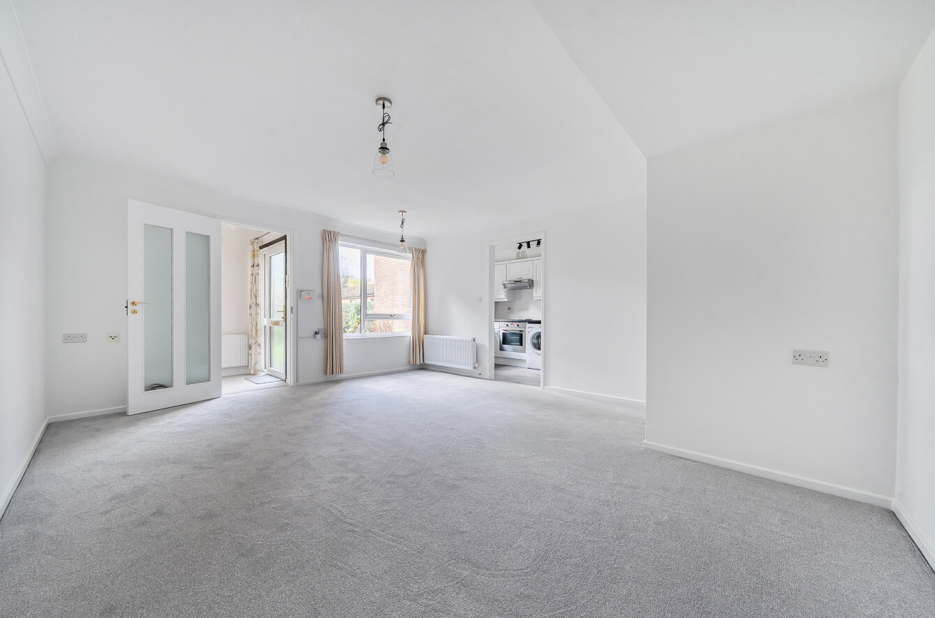 The front door opens to a spacious living/dining room with views across the courtyard garden. Opening to the fully fitted kitchen featuring a range of matching base and wall units, with integrated electric oven and hob, washing machine and fridge freezer. Two Double bedrooms, the second bedroom with a French door to a large patio leading straight on to the gardens. Bathroom with wc, wash hand basin, bath and separate shower. Elmbridge is a well-established village with 276 homes, including bungalows and apartments, set within in 27 acres of landscaped grounds. Located near the charming Cranleigh village, Elmbridge offers residents a range of amenities such as a restaurant, a lively bar, village hall, hair salon, croquet lawn, on-site store, library, and regular doctor's surgeries. Those with green fingers can enjoy our lively allotments, and there's a beautiful walking meadow and daily bus service for a well-rounded lifestyle.