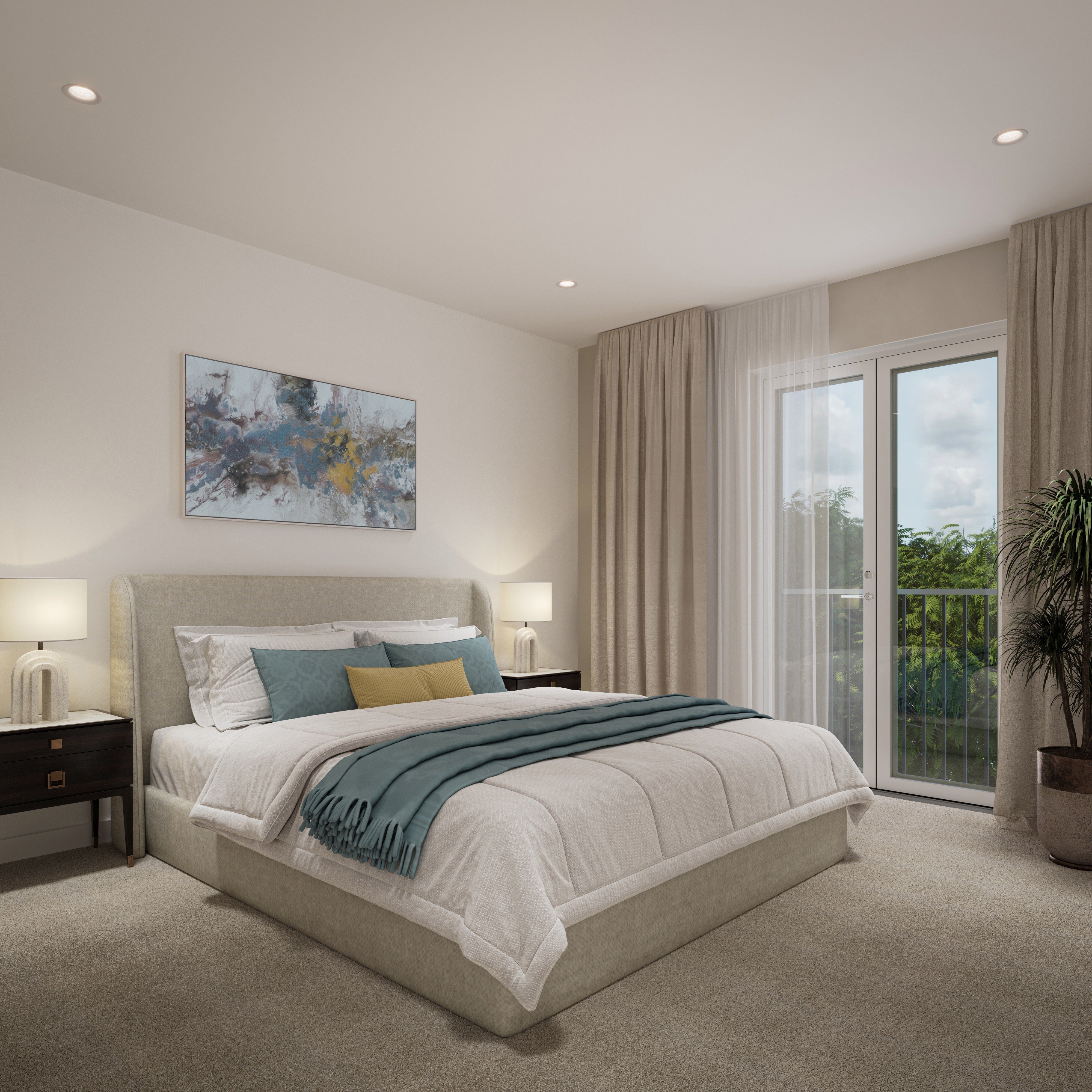 A well-appointed one bedroom first floor apartment featuring a dual access bathroom and a dedicated walk-in wardrobe area. The property offers open plan living, Juliet balconies to both the lounge and bedroom, and the added benefit of a separate storage cupboard. Upon entering, you are greeted with a spacious hallway that leads on to a well-lit and spacious living area adorned with large doors that allow an abundance of natural light. The open plan kitchen is designed with convenience in mind, equipped with Neff integrated appliances including an oven, microwave, hob, fridge freezer and an AEG dishwasher along with a separate utility cupboard housing a Neff washer/dryer and additional storage. The well-proportioned bedroom offers a peaceful retreat, complete with built in wardrobes and generous windows. The bathroom is accessible from the bedroom and living area and features a walk-in shower.