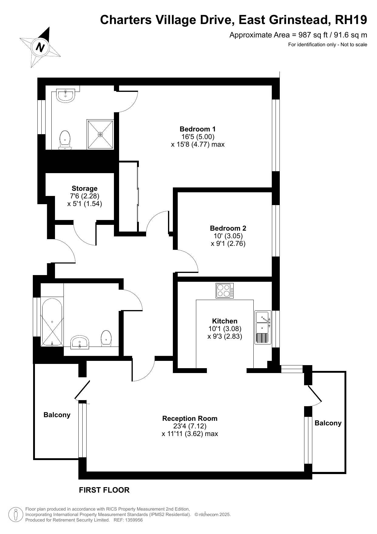 In this freshly decorated and carpeted apartment, the front door opens to a large hall featuring a spacious walk-in store room, which could easily be converted into a home office. The light and spacious living room opens to a large private balcony at one end — perfect for al fresco dining. The other end has access to an even larger balcony, bringing in more light and giving through-ventilation. The fully fitted kitchen includes all the usual modern conveniences, complementing the classic cream units. The bright, airy main bedroom is generously sized, with a built-in wardrobe and a well-equipped en-suite shower room. There is a further double bedroom and a large separate bathroom. Charters is a well-established village comprising 83 properties, including cottages and apartments, set within 17 acres of landscaped grounds. Located near the charming village of Lingfield, Charters offers residents a range of amenities such as a restaurant, bar, hair salon, croquet lawn, on-site shop, library and various resident-led societies - including creative writing, art, and film clubs. Those with green fingers can enjoy pottering on their own terrace or the communal vegetable garden for growing their own produce. The meadow and woodland walks, and twice-weekly minibus service all contribute to a well-rounded lifestyle.