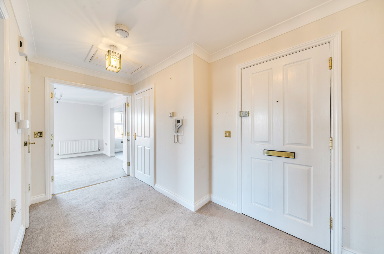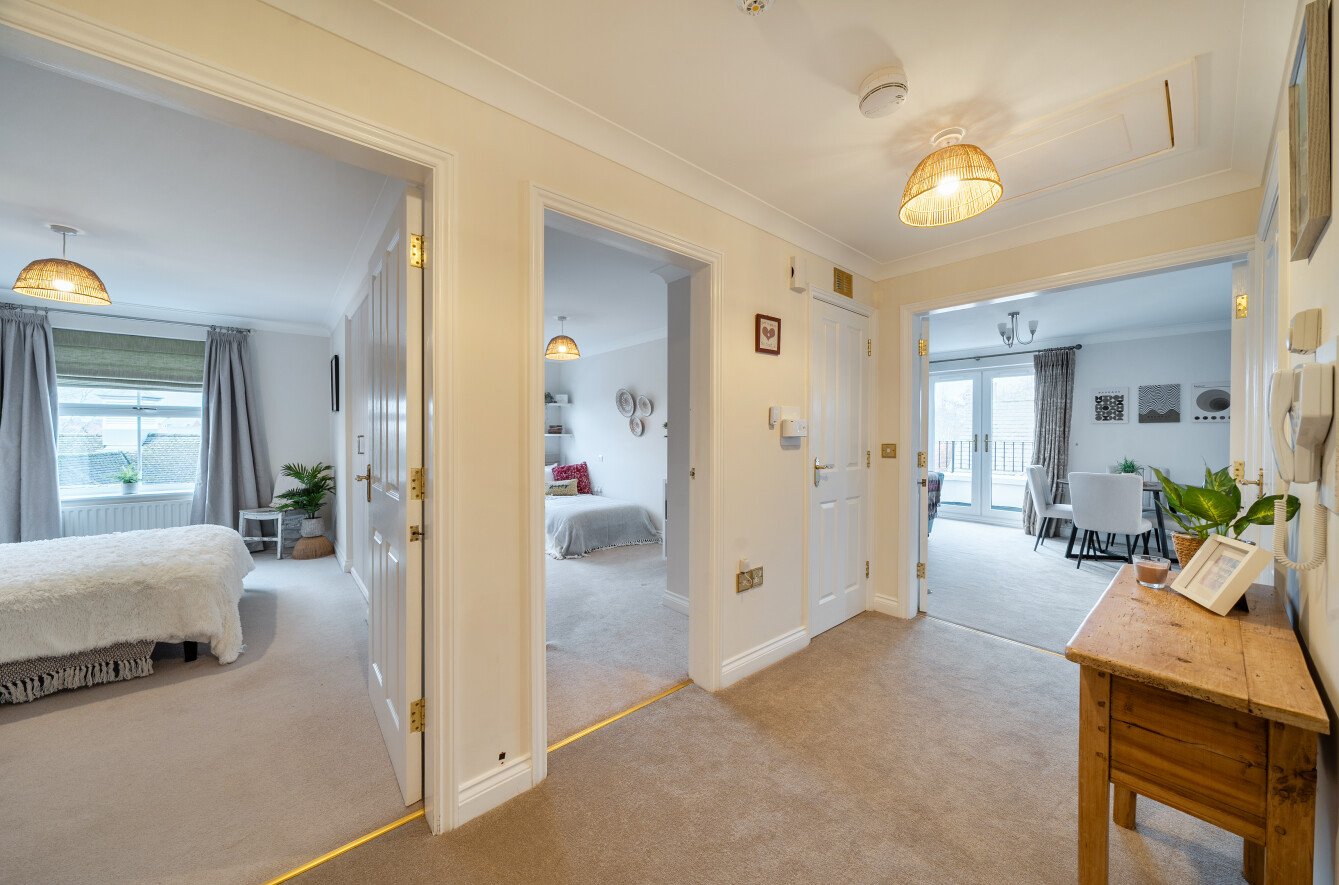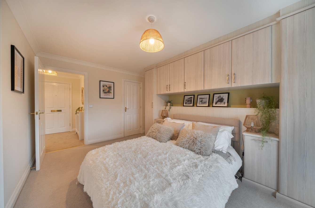 The 2 Bedroom 2 Bathroom apartment is conveniently positioned close to the village clubhouse, the beautiful duck pond and the many village amenities, with nearby parking and the added benefit of a lift serving the building. Inside, offers an airy feel to the spacious lounge/dining room with a bright bay window flows into the modern open-plan kitchen, creating an inviting living space. A central hallway leads to the bedrooms and front door. Principal bedroom comes complete with fitted wardrobes and an ensuite shower room. Second bedroom is a generous single with fitted wardrobes. Located off the hallway is the second bathroom. for guests and everyday use. The apartment combines comfort, practicality, and community living in a highly desirable setting.