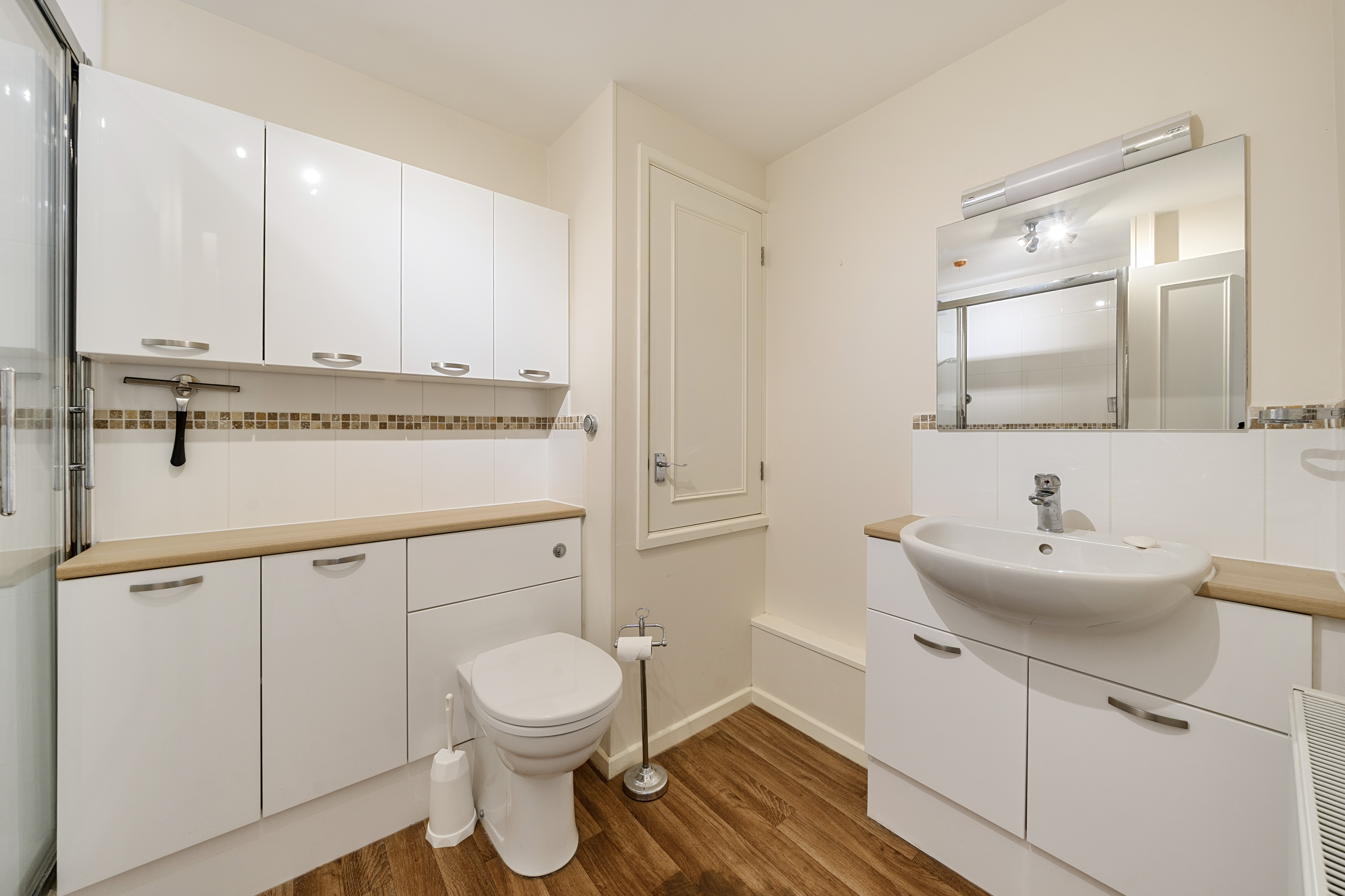 This charming one-bedroom ground floor flat offers light, comfort, and easy access throughout. The living room opens directly onto a south-facing patio, creating a bright, welcoming space. The bedroom is a comfortable double, with fitted wardrobes and space for additional storage. A modern fitted kitchen provides ample cupboard and worktop space benefiting from an integrated electric oven, separate hob and fridge freezer. while the bathroom is finished in a clean, contemporary style with a large shower, wc and wash hand basin. Overall, this is an attractive, easy-to-maintain home that combines indoor comfort with enjoyable outdoor space.
