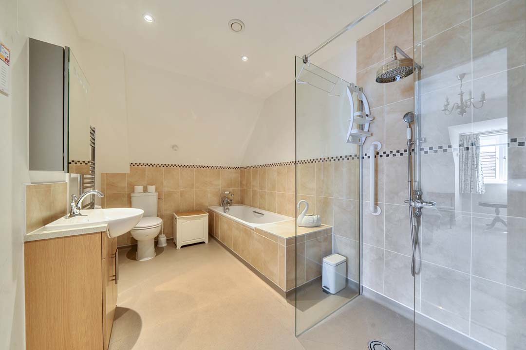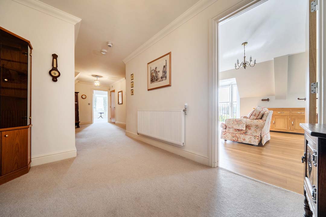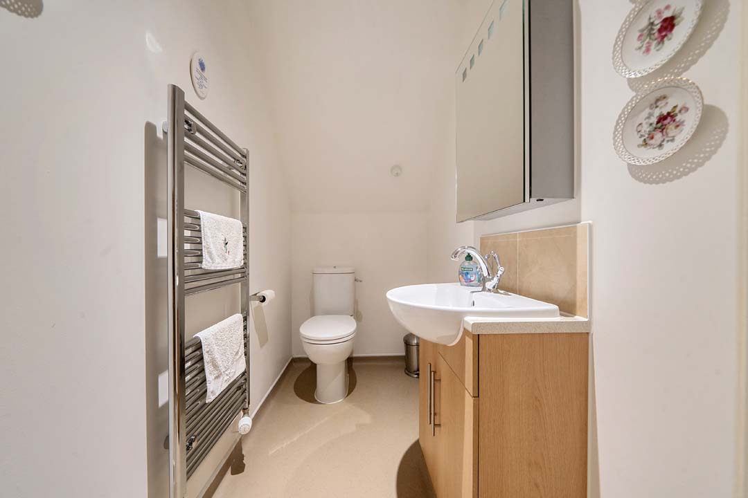 The Juliet balcony in the sitting room brings in lovely views and a wonderful sense of the outdoors, enhancing the spacious accommodation and creating a truly special feel. The open plan kitchen/living room is flooded with light and has plenty of space for a dining table. The modern fully fitted kitchen is complete with an integrated Zanussi fridge freezer, Neff hob and extractor fan, eye level electric oven and dishwasher. Double bedroom with en suite bathroom with separate shower and fitted cupboards. Separate guest cloakroom. There are also 3 useful cupboards in the hallway providing additional storage.
