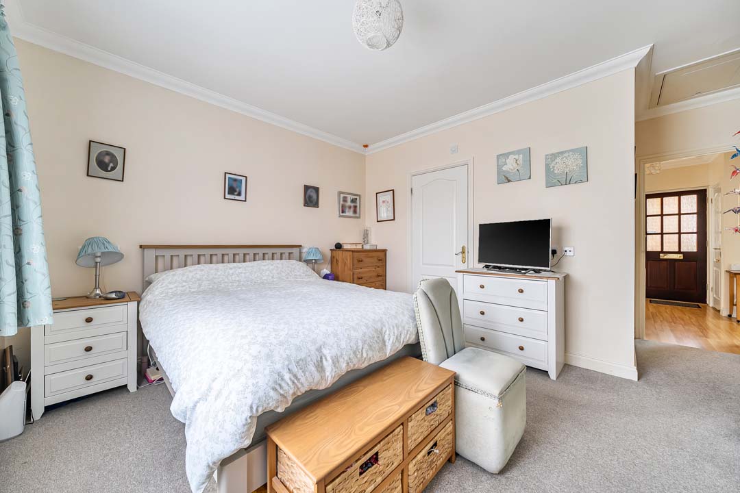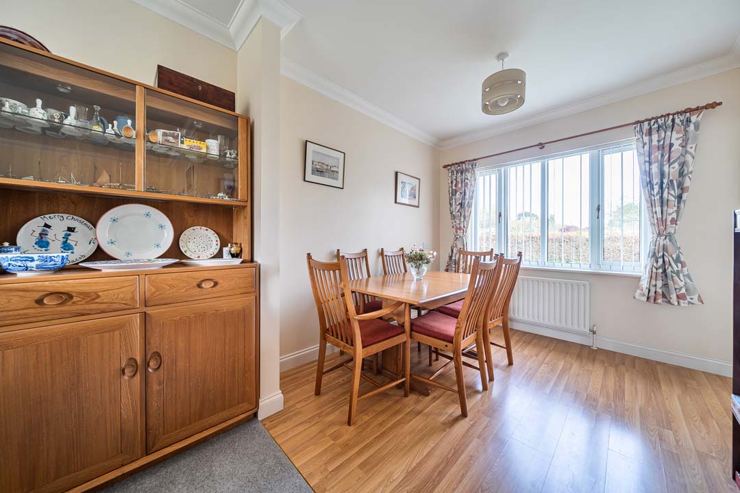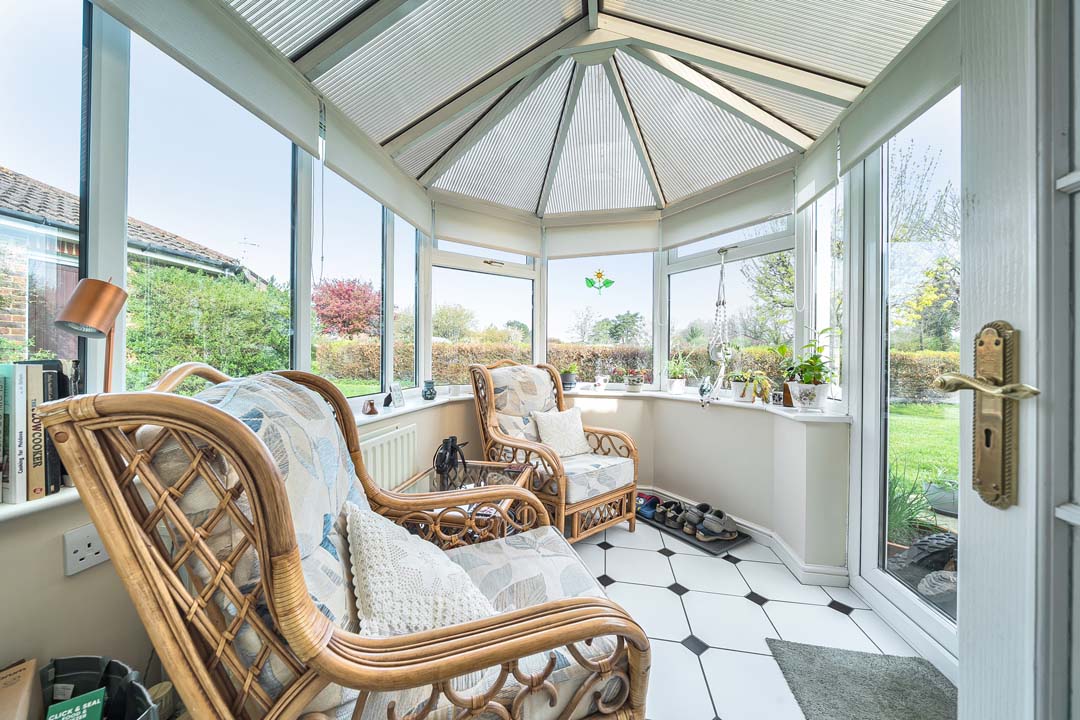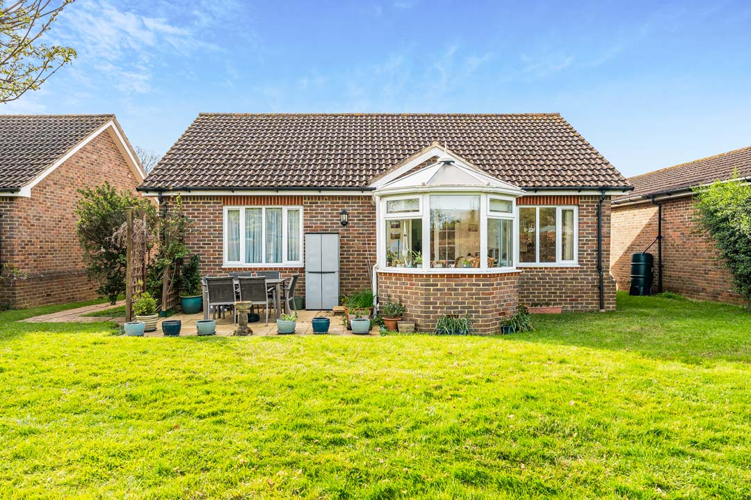 Enjoying a delightful position overlooking the allotments and just moments from the walking meadow, this attractive two-bedroom detached bungalow offers spacious and beautifully balanced accommodation in a peaceful village setting. The front door opens to the hallway where all the accommodation leads from and includes: a double aspect reception/dining room with a door to the kitchen and conservatory. A fully fitted kitchen with a range of matching eye and base units and featuring an eye level Neff electric oven, integrated fridge freezer, electric hob and space for a dishwasher, leading to the conservatory which has French doors opening to a spacious patio overlooking the allotments. The Master bedroom has ample storage with five double wardrobes, en suite cloakroom with plumbing for a washing machine. Second bedroom and family bathroom with walk in shower completes the accommodation. The property combines comfort, style, and an enviable connection to the surrounding landscape.