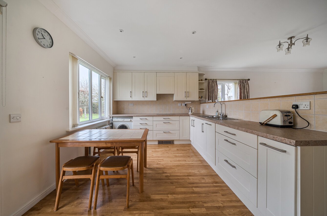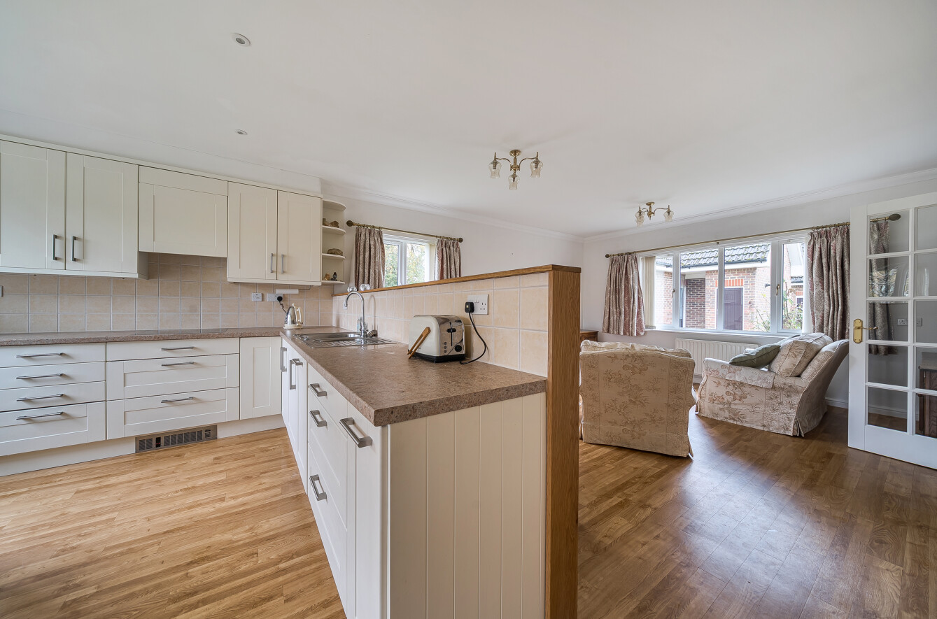 One of only two of this type of detached bungalow in Elmbridge, this charming home enjoys picturesque views across the allotments. The welcoming hallway leads into a spacious living room, thoughtfully designed for comfort and ease of living, with garden views over Theydon Court. The modern kitchen/breakfast room offers ample space for a dining table and features integrated appliances including a dishwasher and fridge freezer, plus dedicated space for a washing machine and tumble dryer. From here, enjoy views over the allotments with a door to the conservatory and patio. The master bedroom benefits from fitted wardrobes and an en suite shower room, while a second bedroom provides flexibility for guests or a home office. A well-appointed bathroom includes a bath, WC, and wash basin. Completing the property is a separate garage, adding convenience and storage. Elmbridge is a well-established village with 276 homes, including bungalows and apartments, set within in 27 acres of landscaped grounds. Located near the charming Cranleigh village, Elmbridge offers residents a range of amenities such as a restaurant, a lively bar, village hall, hair salon, croquet lawn, on-site store, library, and regular doctor's surgeries. Those with green fingers can enjoy our lively allotments, and there's a beautiful walking meadow and daily bus service for a well-rounded lifestyle.