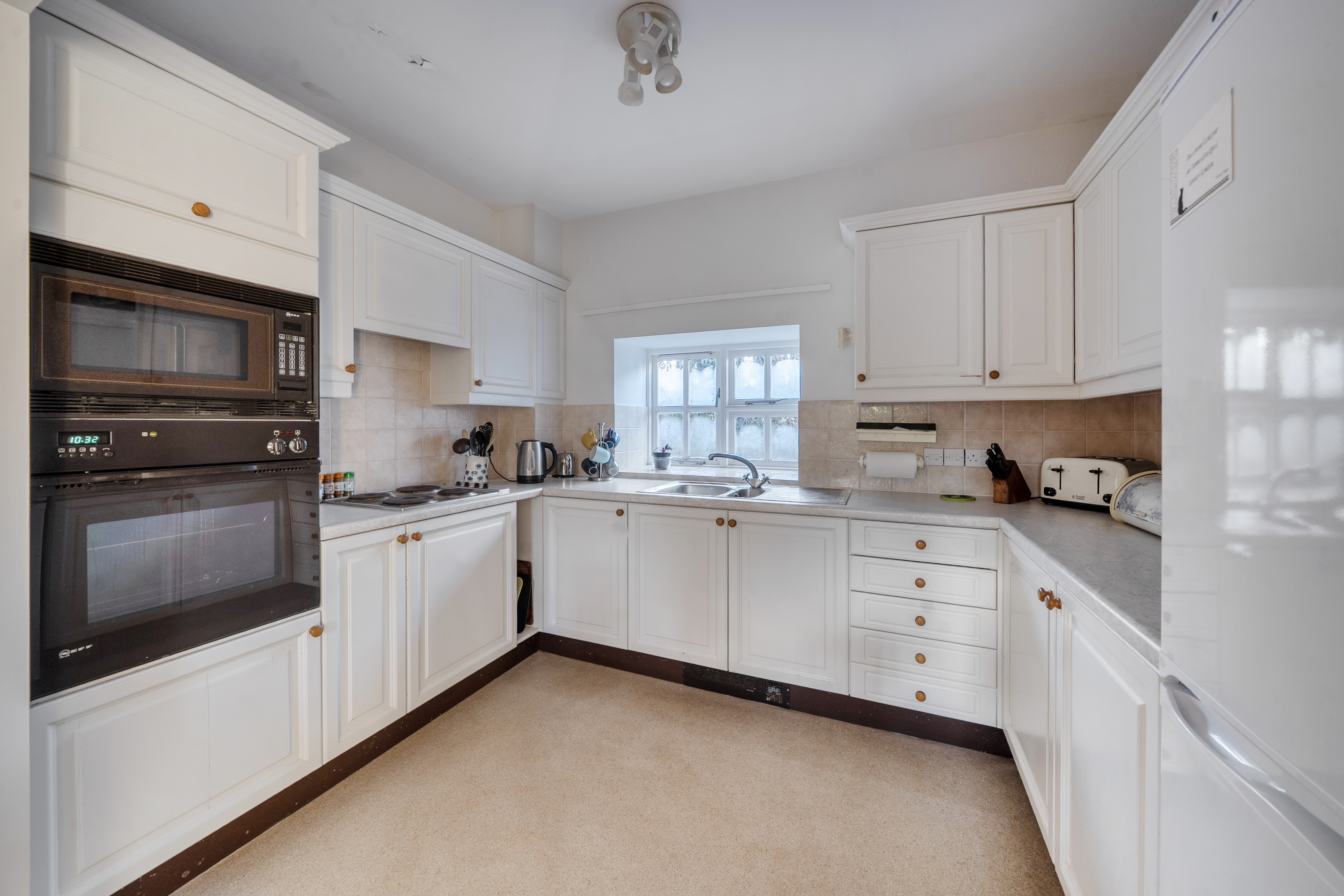 This characterful two-bedroom cottage is situated on the edge of the village and benefits from its own garden with gated access, a small patio area, and a nearby garage in a block. The ground floor accommodation comprises a dual-aspect sitting room with access to the patio and garden, a cloakroom, an open-plan fitted kitchen with integrated oven and , hob, fridge freezer, and a dining room. Stairs with an optional stairlift lead to the upper level, which offers two bedrooms with delightful countryside views and a bathroom with bath with shower over. The property includes a private garage onsite. Set in five acres of gardens and grounds with stunning views of the surrounding countryside, The Priory comprises 43 cottages and apartments centred around a magnificent listed Victorian Priory that houses extensive leisure and social facilities including a heated swimming pool and free minibus service. The Priory is akin to owning a slice of English heritage, as the main Abbotsleigh House dates back to 1848. Tenure: Leasehold