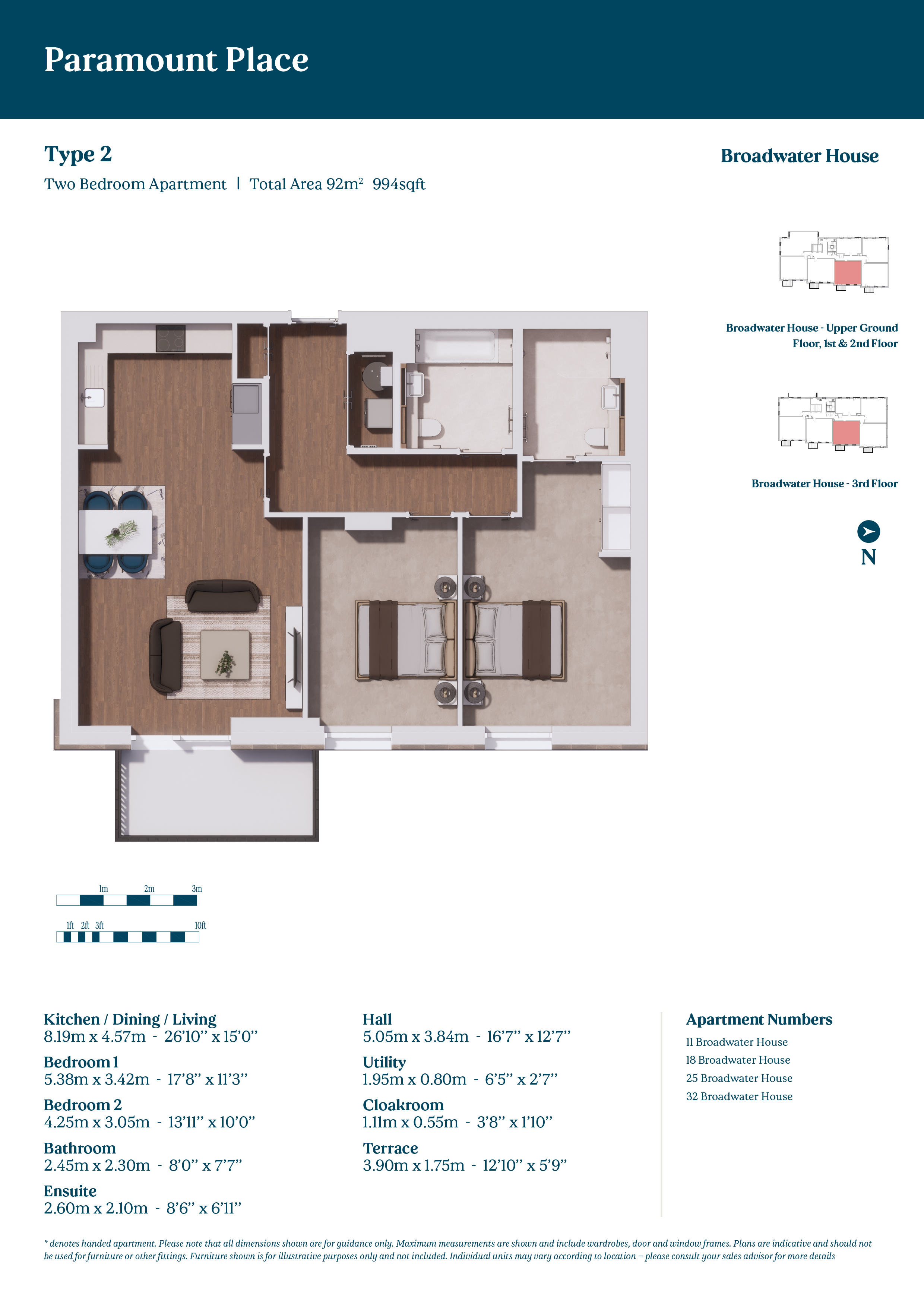 Welcome to this beautifully appointed two-bedroom apartment on the ground floor with a private terrace offering direct access to a spacious communal garden. Upon entering, you are greeted by a separate hallway, leading on to an open plan living area with large doors that allow an abundance of natural light. The designated kitchen area is designed with convenience in mind, equipped with Neff integrated appliances including an oven, microwave, hob, fridge freezer and an AEG dishwasher along with a separate utility cupboard housing a Neff washer/dryer and additional storage. The two well-proportioned bedrooms offer a peaceful retreat, complete with built in wardrobes and generous windows. The master bedroom benefits from an ensuite bathroom with walk in shower and the main bathroom has a bath. This apartment is finished throughout in a light contemporary colour palette, offering a stylish and welcoming home.