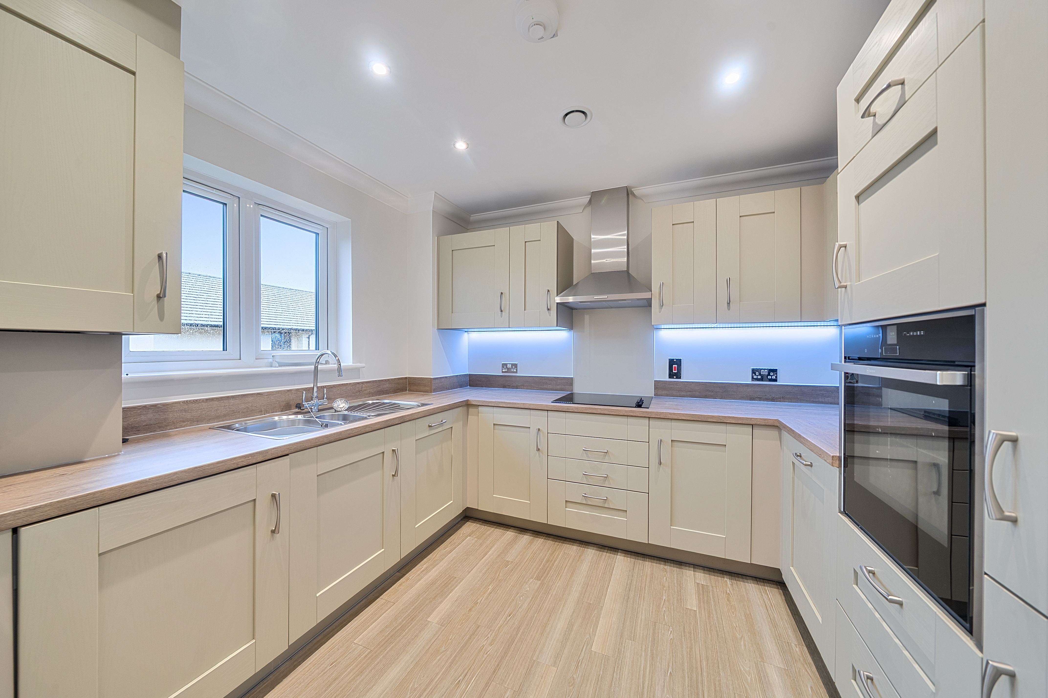 A lovely two-bedroom apartment with a south-facing, luxury fully-fitted kitchen and a large reception room with doors opening out onto a private south-facing balcony with nice views. Further accommodation off the hallway comprises a master bedroom with ensuite shower room, second good sized double bedroom and spacious main bathroom. There is also good storage cupboard space. Well located on the first floor in a quiet part of the complex with lift access. The clubhouse is nearby with brilliant facilities including restaurant, lounge, bar, library and beauty salon, as well as a small shop for daily supplies.. Tenure: Leasehold