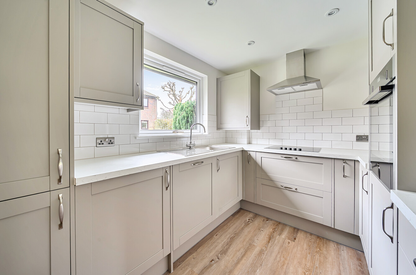 This newly modernised bungalow offers light, contemporary accommodation in a peaceful village setting. The brand new kitchen features integrated appliances including a dishwasher, fridge freezer and eye level oven, creating a practical and attractive space for everyday living. A bright sitting room opens through French doors onto a delightful patio, perfect for enjoying the sunshine and outdoor seating. The principal bedroom benefits from a dressing area with fitted wardrobes and en suite cloakroom, providing a comfortable private retreat. There is a well-proportioned second bedroom, ideal for guests or use as a study, together with a separate modern shower room for added convenience. Elmbridge is a well-established village with 276 homes, including bungalows and apartments, set within in 27 acres of landscaped grounds. Located near the charming Cranleigh village, Elmbridge offers residents a range of amenities such as a restaurant, a lively bar, village hall, hair salon, croquet lawn, on-site store, library, and regular doctor's surgeries. Those with green fingers can enjoy our lively allotments, and there's a beautiful walking meadow and daily bus service for a well-rounded lifestyle.