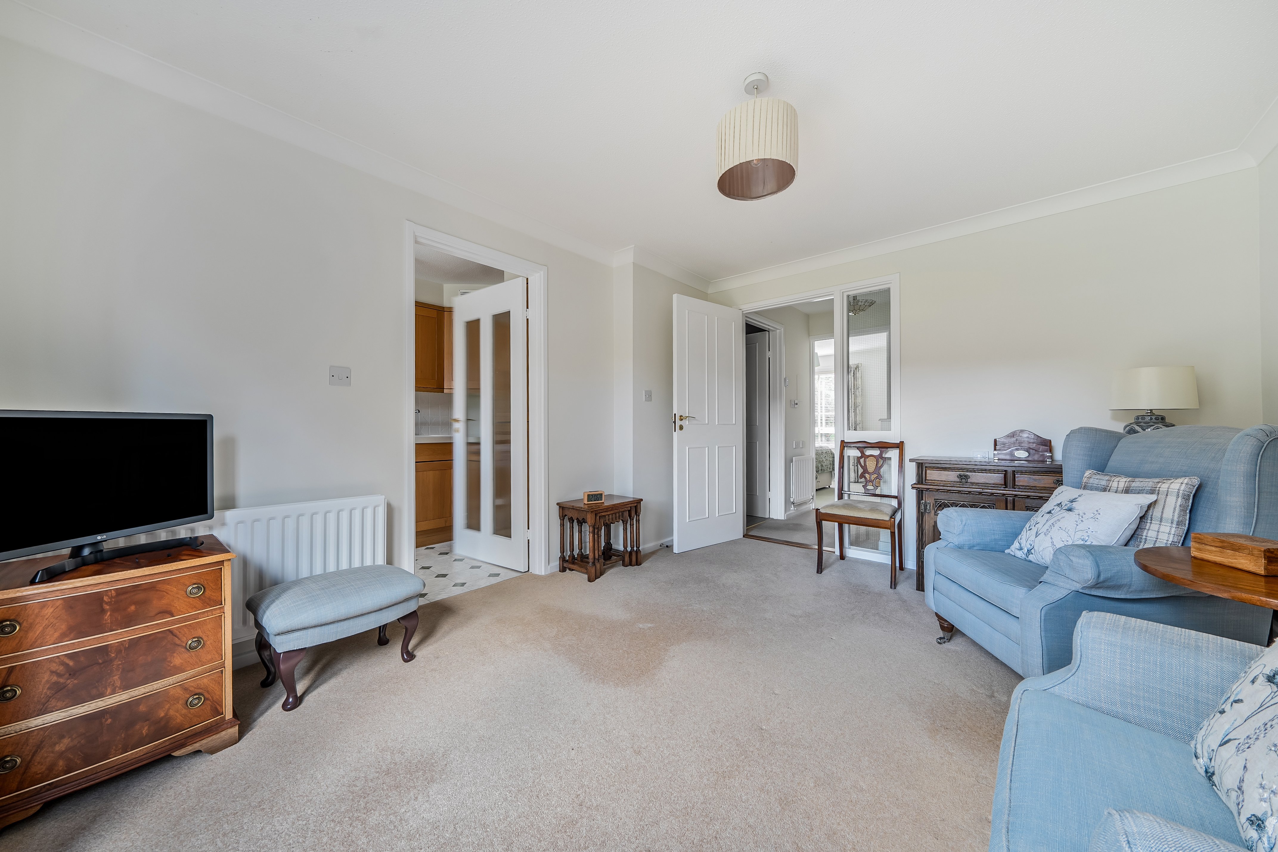 Ideally positioned in Elmbridge offering easy access to all the facilities. From the communal hallway the front door opens to a hall from where all the accommodation is accessed. Living room with room for a dining table and a door to a patio with views across the landscaped gardens. Fully fitted kitchen with plumbing for a washing machine, an integrated electric oven, hob and fridge freezer. Double bedorom with views across the courtyard of Loxford Court and ample fitted wardrobes. Easy access shower room with wc, wash hand basin and large shower. Additional hall storage cupboard. Elmbridge is a well-established village with 276 homes, including bungalows and apartments, set within in 27 acres of landscaped grounds. Located near the charming Cranleigh village, Elmbridge offers residents a range of amenities such as a restaurant, a lively bar, village hall, hair salon, croquet lawn, on-site store, library, and regular doctor's surgeries. Those with green fingers can enjoy our lively allotments, and there's a beautiful walking meadow and daily bus service for a well-rounded lifestyle.